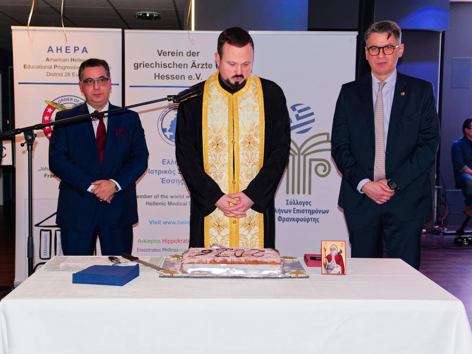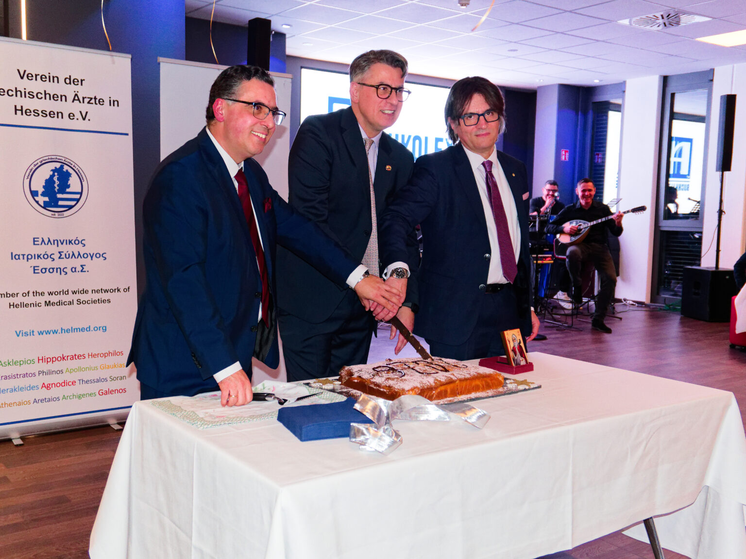 Μια ιστορική στιγμή για την ελληνική παροικία της Φρανκφούρτης: Για πρώτη φορά, τρεις σύλλογοι ένωσαν τις δυνάμεις τους για να διοργανώσουν από κοινού την παραδοσιακή κοπή Βασιλόπιτας 2026. Μαζί με την ΑΧΕΠΑ ήταν ο Σύλλογος Ελλήνων Επιστημόνων Φρανκφούρτης και ο Ελληνικός Ιατρικός Σύλλογoς Εσσης. Η εκδήλωση σημείωσε εντυπωσιακή επιτυχία και συγκέντρωσε 200 καλεσμένους για μια βραδιά γεμάτη ελληνικό πολιτισμό, παράδοση και αλληλεγγύη.