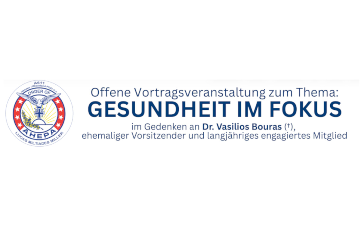 Το τμήμα AHEPA A611 „Lucas Miltiades Miller”− Hessen/Rheinland-Pfalz e.V. διοργανώνει μια ανοιχτή εκδήλωση με θέμα την Υγεία, αφιερωμένη στη μνήμη του εκλιπόντος πρώην Προέδρου του τμήματος, Δρ. Βασιλείου Μπούρα (†).
